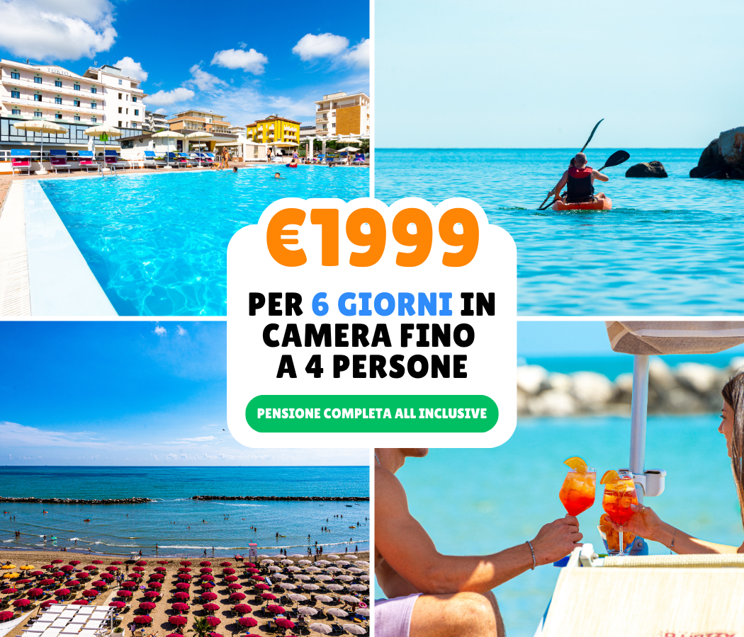 IscrivitiOfferta 6 giorni in pensione completa dal 24 al 30 Agosto ad € 1999 in camera fino a 4 persone