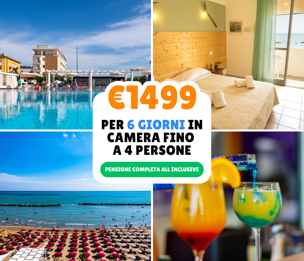 IscrivitiOfferta 6 giorni in pensione completa dal 31 agosto al 6 settembre all’Hotel Tokio Beach a €1499 in camera fino a 4 persone