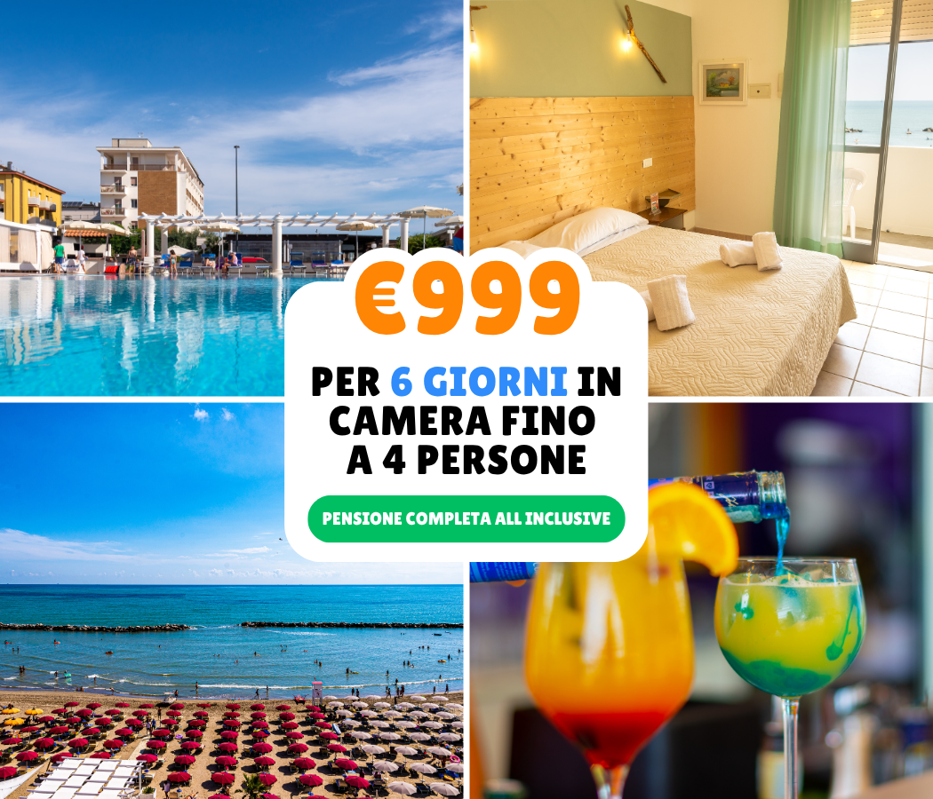 IscrivitiOfferta 6 giorni in pensione completa dal 7 al 13 settembre all’Hotel Tokio Beach a €999 in camera fino a 4 persone